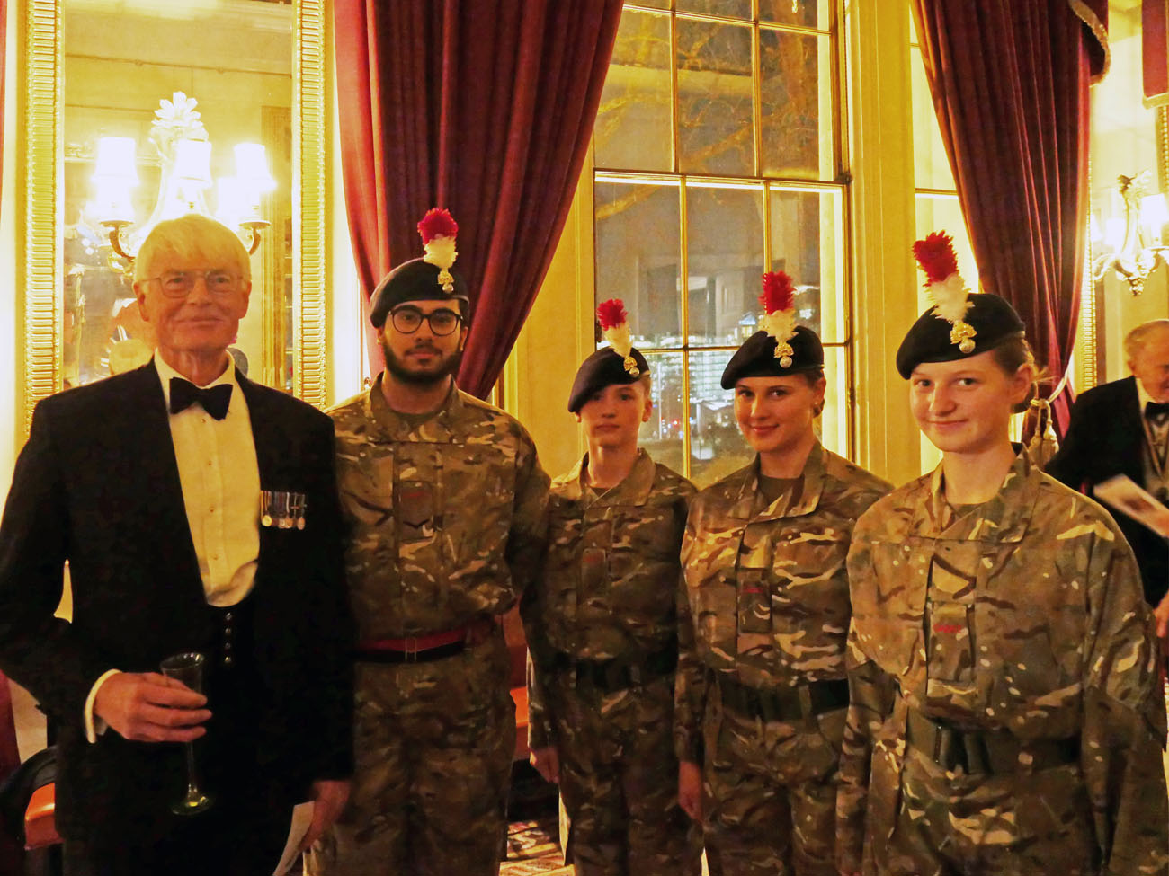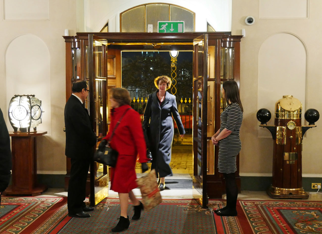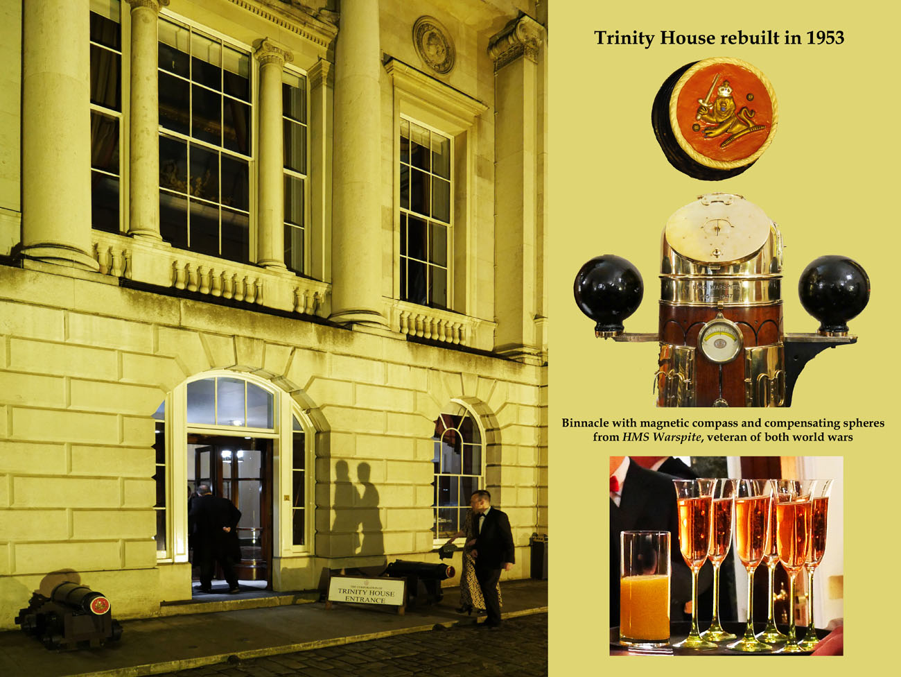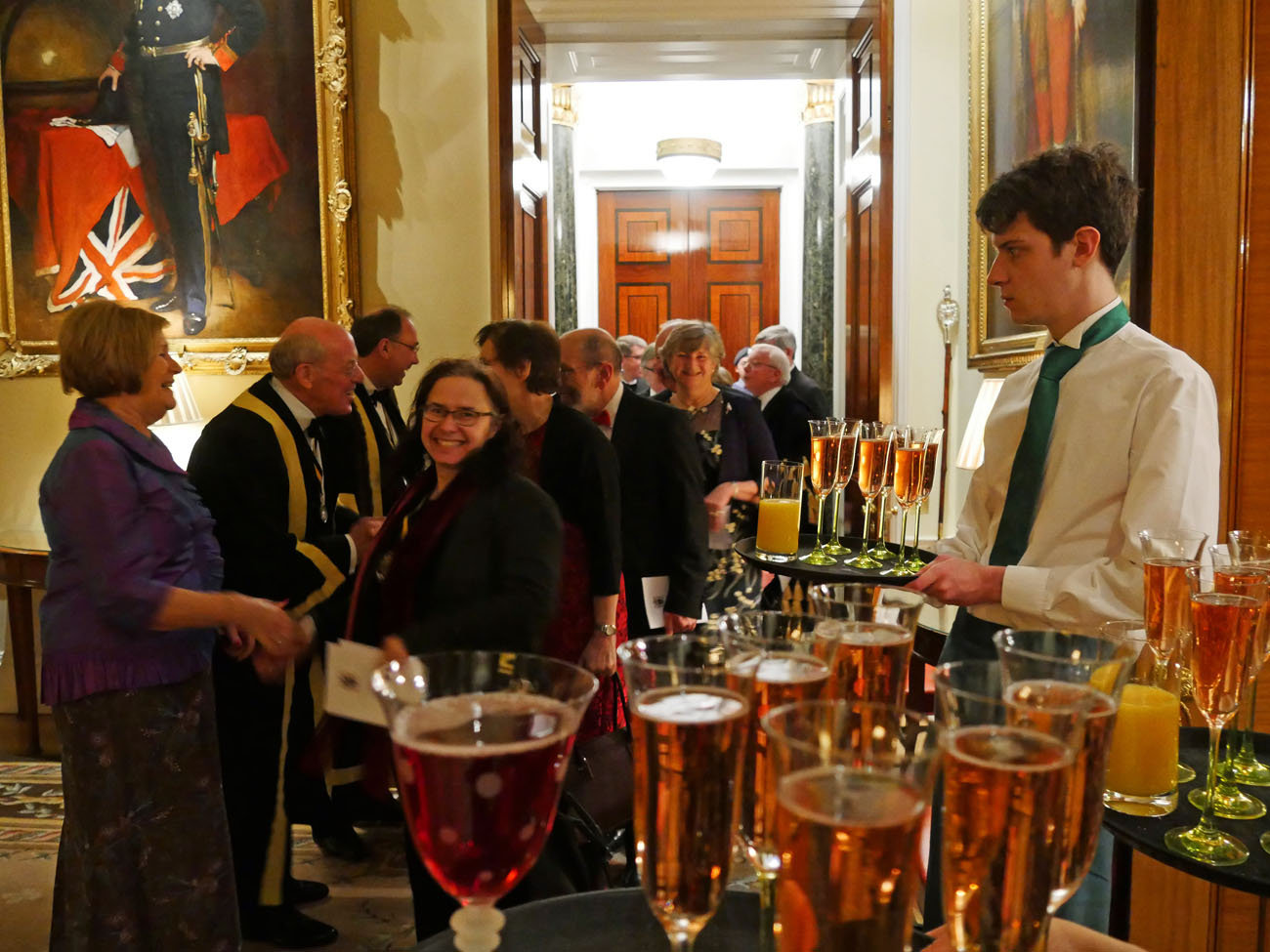 We were warmly welcomed by their headquarters ‘crew’ and by our impeccably turned out cadets of the 1921 Air Cadets Squadron and the 135 Detachment Royal Fusiliers. Trinity House is filled with maritime paintings and artefacts including a contemporary painting of Queen Elizabeth I, Churchill and Roosevelt meeting at sea during World War II, and the ship’s bell from the Royal Yacht Britannia, which were a delight to peruse. Many of their records and possessions were destroyed in the Great Fire of London, another fire in 1715 and an incendiary bomb during the Blitz that destroyed the 1796 building. It was faithfully rebuilt in the same style and reopened in 1953. The reception was held under the magnificently painted ceiling in the Court Room, where Edgar King described the unique history of Trinity House.
