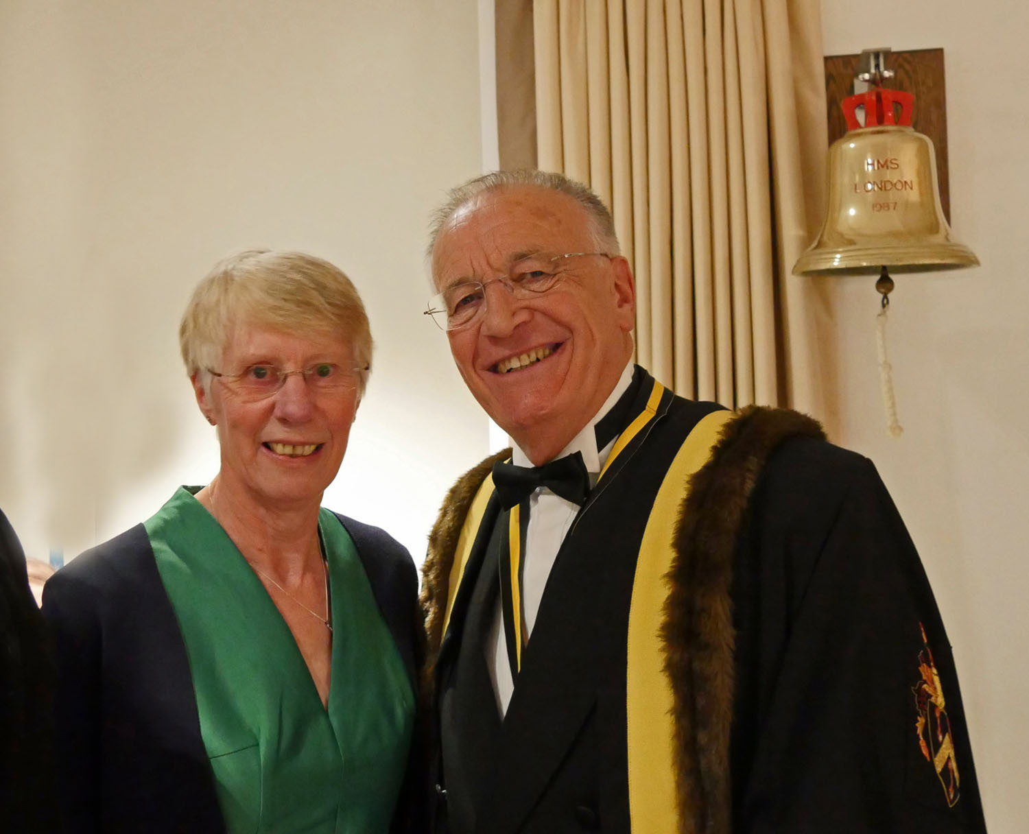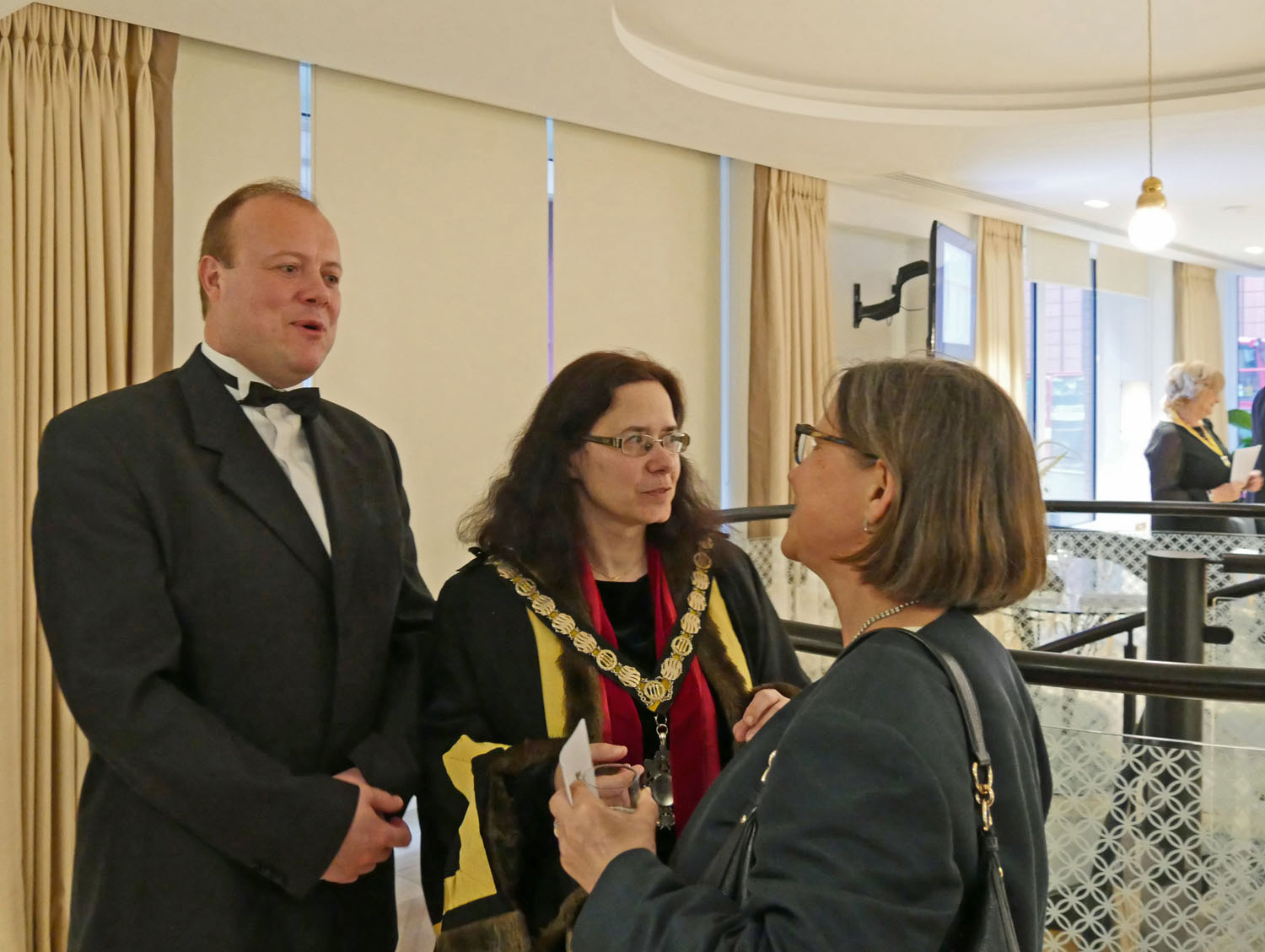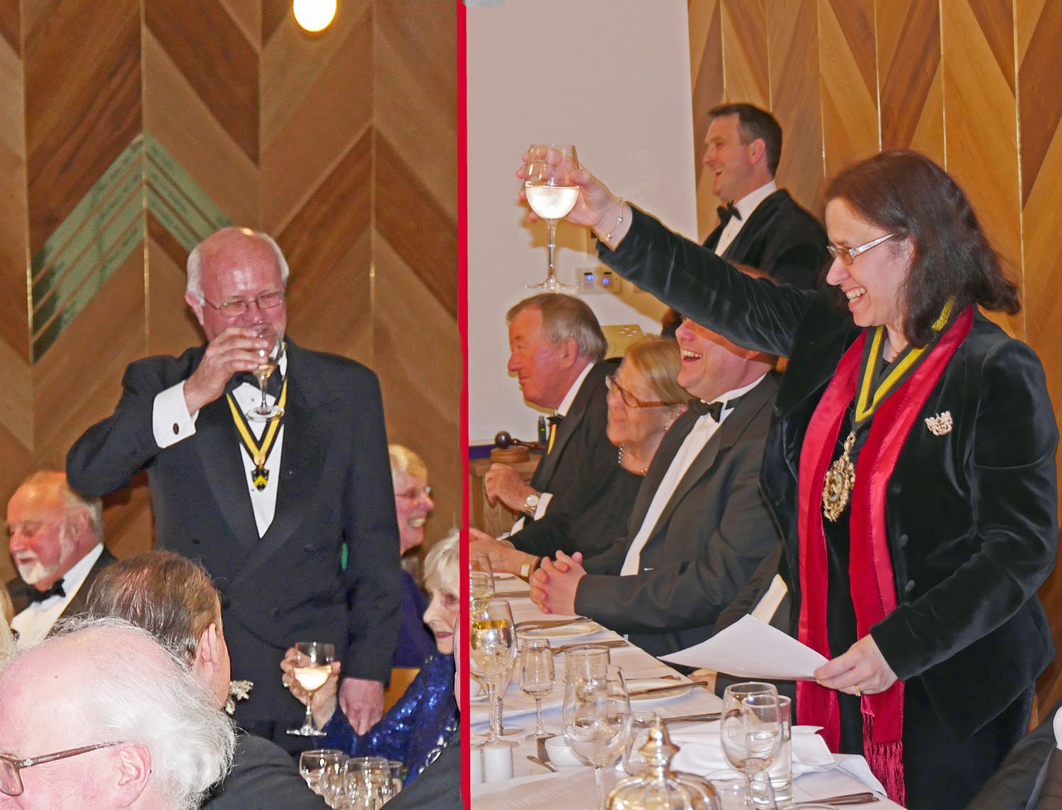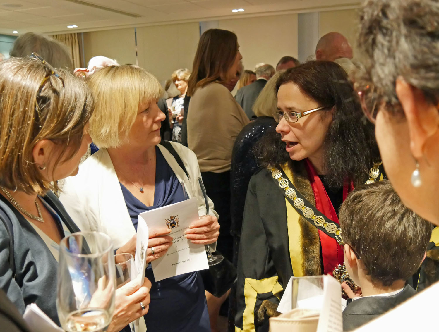 The Beadle then asked for silence to hear the Master’s response. The Master started by repeating the welcome to all the guests, especially her family and thanked them for all their support. She also thanked everyone for electing her and providing help and in particular, Stuart Fraser the outgoing Master, to whom she presented his Past Master’s badge. Clare concluded by inviting every-one to join her and the Wardens upstairs for a stirrup cup. She sat down to great applause.