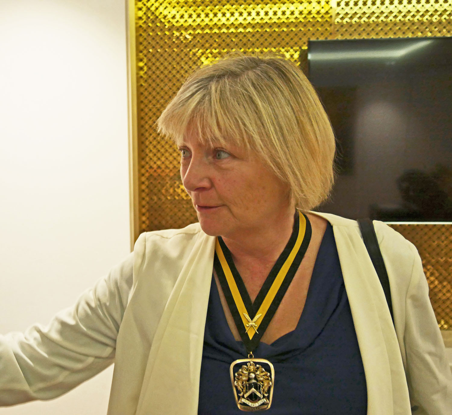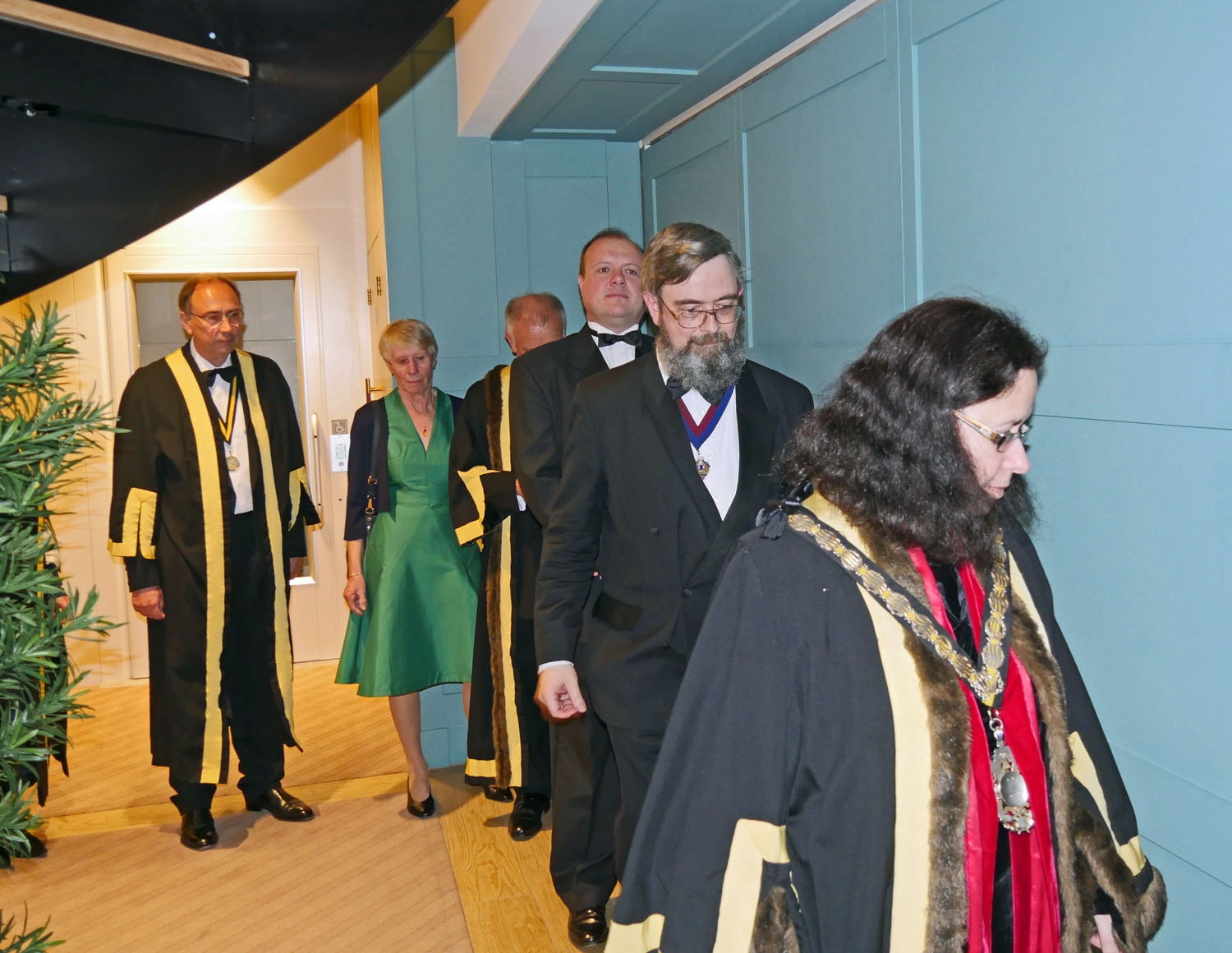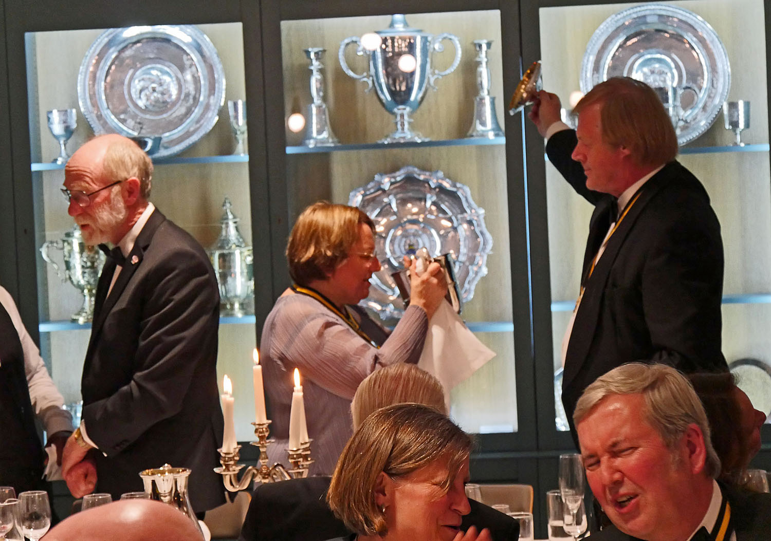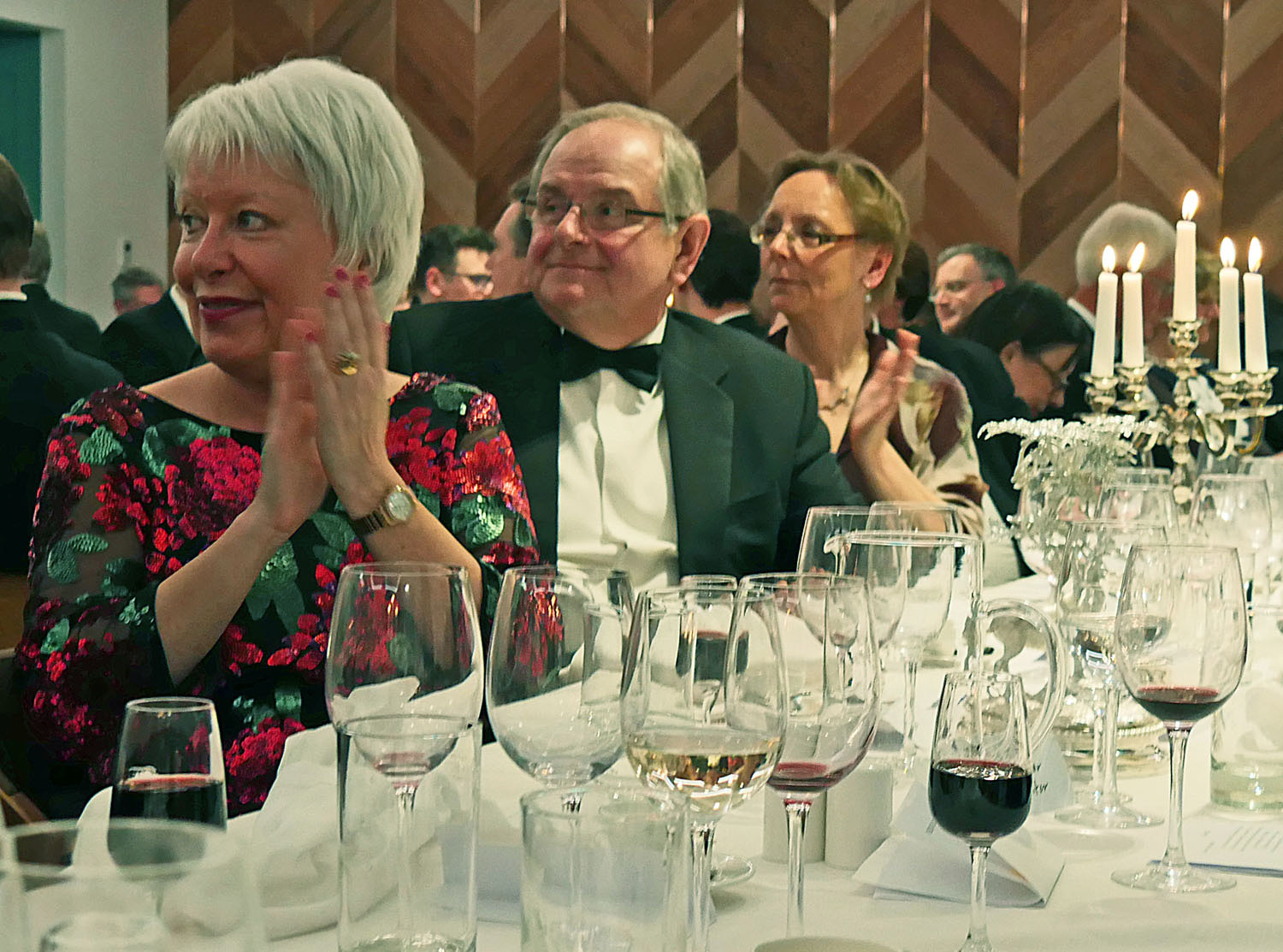 The Beadle then asked for silence to hear the Master’s response. The Master started by repeating the welcome to all the guests, especially her family and thanked them for all their support. She also thanked everyone for electing her and providing help and in particular, Stuart Fraser the outgoing Master, to whom she presented his Past Master’s badge. Clare concluded by inviting every-one to join her and the Wardens upstairs for a stirrup cup. She sat down to great applause.