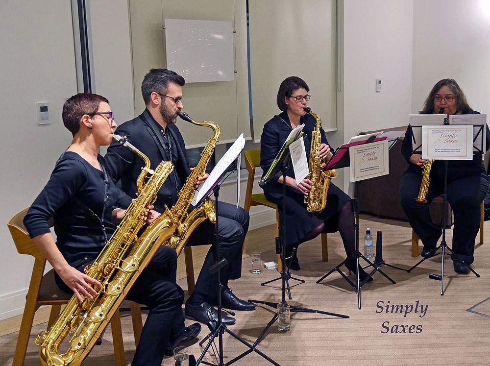 The music for the evening was provided by Simply Saxes, a unique quartet of saxophonists who have been playing together for nearly 10 years, and included our very own Liveryman, Georgina Benton. Attendees enjoyed a selection of classic jazz standards by such greats as Gershwin, Scott Joplin, Cy Coleman, Cole Porter and Duke Ellington.